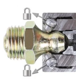 - Eenmaal geplaatst, blijft het op de vetnippel zitten; deze hoeft niet meer vastgehouden worden zoals bij de standaard vetnippels