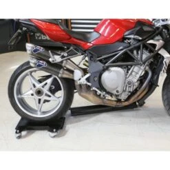 Verrijdbare centrale motorenstandaard of op het motorfiets achterwiel met verlenging voor zijstandaard
