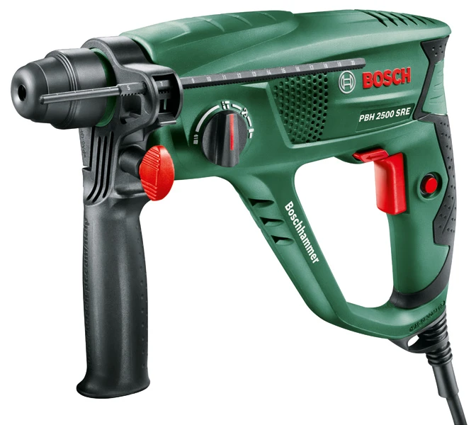Klein, licht en eenvoudig te bedienen – de PBH 2500 SRE van Bosch laat geen wens onvervuld. Door de ergonomische bouwvorm en het geringe gewicht ligt de machine goed in de hand, wat bij het werk kracht bespaart. Voor het wisselen van boren en beitels is dankzij een SDS-plus-boorhouder geen gereedschap nodig. Vario-Lock maakt het bovendien mogelijk om de beitel in 36 verschillende posities te bevestigen – afhankelijk van datgene wat in de werksituatie nodig is. Een verder pluspunt is de toerentalregeling die u als een gasgeef-schakelaar bedient: zo kunt u bijvoorbeeld behoedzaam beginnen te boren in gevoelige materialen als tegels, om daarna met vol toerental snel verder te werken.