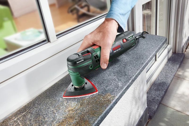 Met de PMF 250 CES van Bosch hebben doe-het-zelvers de beschikking over een veelzijdig en krachtig multifunctioneel gereedschap voor alle renovatie- en reparatiewerkzaamheden. De krachtige motor met een vermogen van 250 watt en Bosch Constant Electronic maken snel werken mogelijk bij het schuren, doorslijpen, zagen en frezen. Door het AutoClic-systeem kunnen accessoires zonder speciale sleutel gewisseld worden, en dat in slechts drie seconden. Dankzij de Starlock-gereedschapopname staat een groot assortiment accessoires voor allerhande werkzaamheden ter beschikking. Met de traploze instelling van het aantal oscillerende bewegingen kan de PMF 250 CES bovendien perfect op het te bewerken materiaal afgestemd worden.