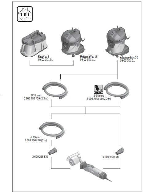 - Stofafzuiging voor een schonere werkomgeving (in combinatie met een bouwzuiger – bijvoorbeeld AvdancedVac – UniversalVac)