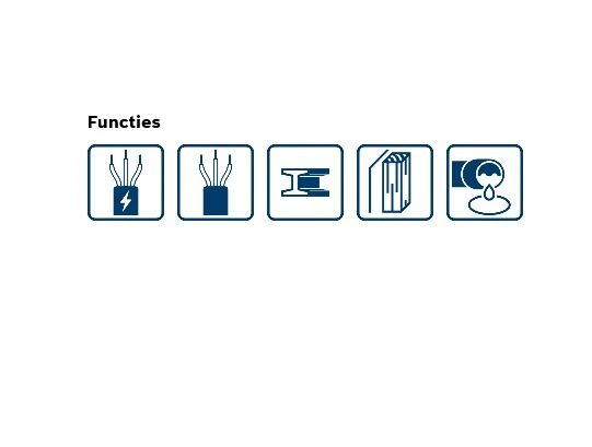 - Detecteerbare materialen : magnetische metalen (bijv. ijzer) – niet-magnetische metalen (bijv. koper) – spanningvoerende leidingen – niet-spanningvoerende leidingen – Lege kunststof buizen – met water gevulde kunststof buizen – houten onderconstructies