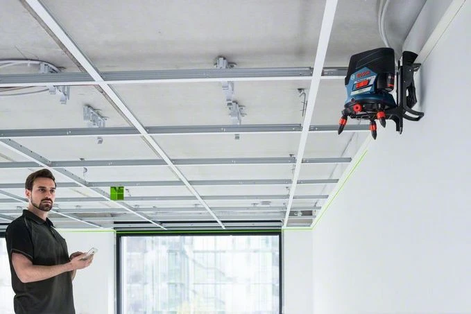 - Horizontale en verticale laserlijnen evenals twee gecentreerde loodpunten met optimale zichtbaarheid