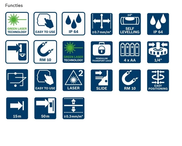 - Duurzaamheid en gebruiksgemak. Groene laserlijnen en groene loodpunten