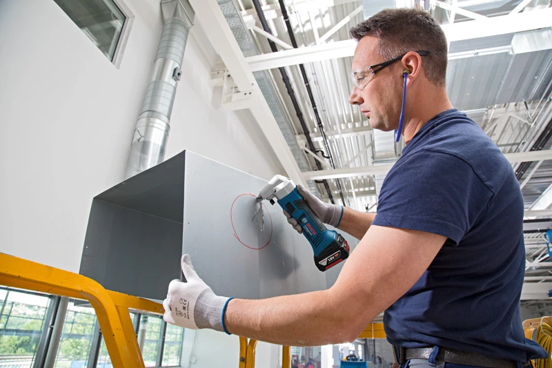 De 18V-knabbelschaar voor flexibel knippen op de bouwplaats