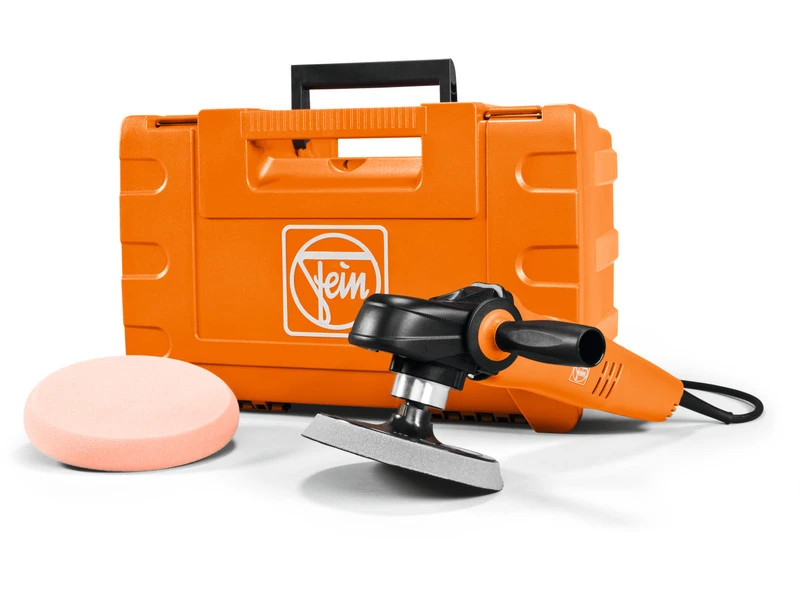 - 1x FEIN PowerPolisher WPO 14-15 E met greepkap en extra met zijdelingse anti-vibratiehandgreep in robuuste kunststof koffer