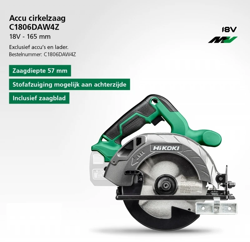 HiKOKI C1806DAW4Z Cirkelzaag | 18 V | 57 mm | 165 mm | in doos | Basic