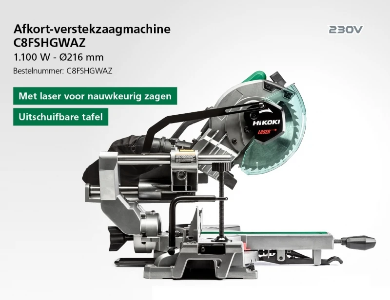 HiKOKI C8FSHGWAZ Afkortzaagmachine | 1100 Watt | 216 mm | met Laser