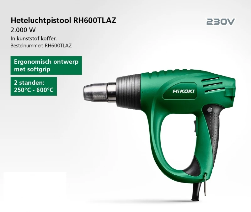 HiKOKI RH600TLAZ Heteluchtpistool | 450 – 600 graden | koffer | +Accessoires