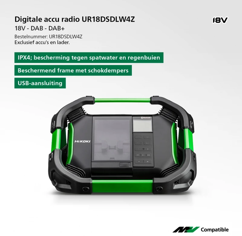 HiKOKI UR18DSDLW4Z Bouwradio | Digitaal | DAB+ | USB | Voor 14,4-18V Slide accu