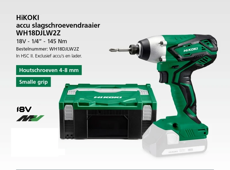 HiKOKI WH18DJLW2Z Slagschroevendraaier | 18 Volt Li-Ion | 145 Nm | Basic | HSC II