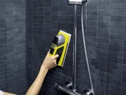 Met de nieuwe vibrerende accu-wisser KV 4 van Karcher kunnen gladde oppervlakken moeiteloos worden gereinigd, zoals ruiten, spiegels, glazen tafels, tegels en nog veel meer. De accu-wisser maakt het schoonmaken veel eenvoudiger door de elektrische watervoorziening en door de trillingen die de accumotor veroorzaakt. Het vuil komt los als u met de accu-wisser over het vuile oppervlak beweegt. Moeizaam schrobben is niet meer nodig. Met niet meer dan 2 bedieningselementen is het nieuwe reinigingsapparaat intuitief in gebruik. Bovendien is de accu-wisser handzaam en snel klaar voor gebruik. U hoeft alleen maar de tank te vullen met water en het meegeleverde geconcentreerde reinigingsmiddel, en u kunt beginnen met reinigen. De meegeleverde wisdoek van de KV 4 kan worden gewassen en daarna opnieuw gebruikt. Na gebruik kan het resterende vocht het beste worden afgezogen met een Window Vac van Karcher.