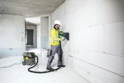 Op bouw- en werkplaatsen komen iedere dag allerlei soorten schadelijk fijnstof vrij die deels in de longen kunnen doordringen. De nieuwe volautomatische filterreiniging zorgt ervoor dat onze compacte stof-/waterzuiger NT 30/1 Tact Te M ongekend grote hoeveelheden fijnstof verwijdert en biedt tegelijkertijd een gegarandeerde filtratie-efficiëntie van 99,9 procent. De filterreiniging en zuigkracht worden bovendien voortdurend bewaakt en geregeld met sensorgestuurde elektronica. Het geïntegreerde stopcontact met automatische in-/uitschakelfunctie en het volledig antistatische systeem (met geleidende toebehoren) maken het apparaat bijzonder geschikt voor directe afzuiging bij stofproducerende elektrische werktuigen. Stof dat zich al op vloeren of machines heeft afgezet, kan met de nieuw ontwikkelde toebehoren, die veilig op het apparaat zelf zijn opgeborgen, moeiteloos en volledig worden opgezogen in het robuuste 30-liter reservoir met metalen zwenkwielen en bumper.