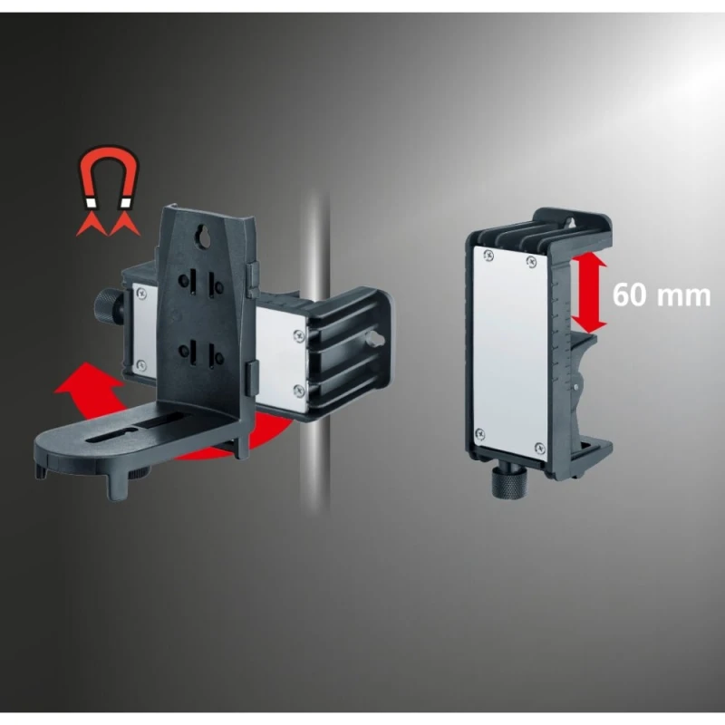 - Het meettoestel biedt een goede zichtbaarheid, een tijdbesparende automatische uitlijning en veelzijdige bevestigingsmogelijkheden