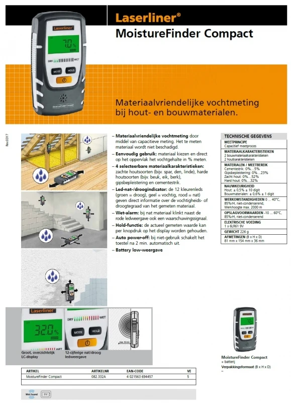 Technische gegevens van Laserliner MoistureFinder Compact