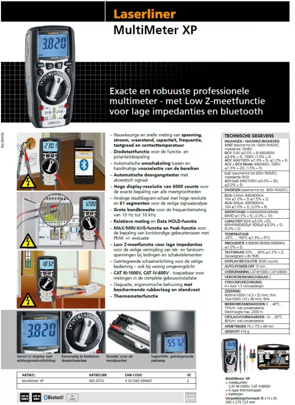 Laserliner MulitiMeter XP MulitiMeter XP | Digitaal | Bluetooth