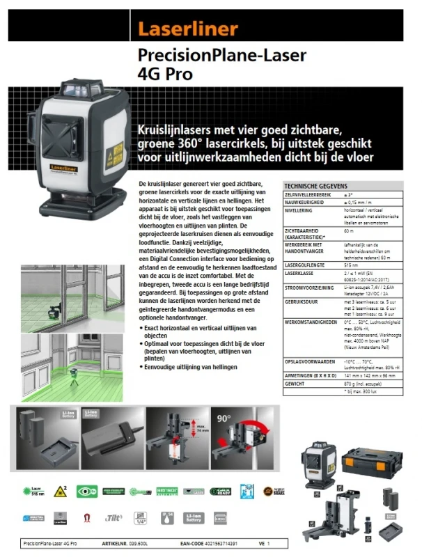 Technische gegevens van Laserliner PrecisionPlane 4G Pro