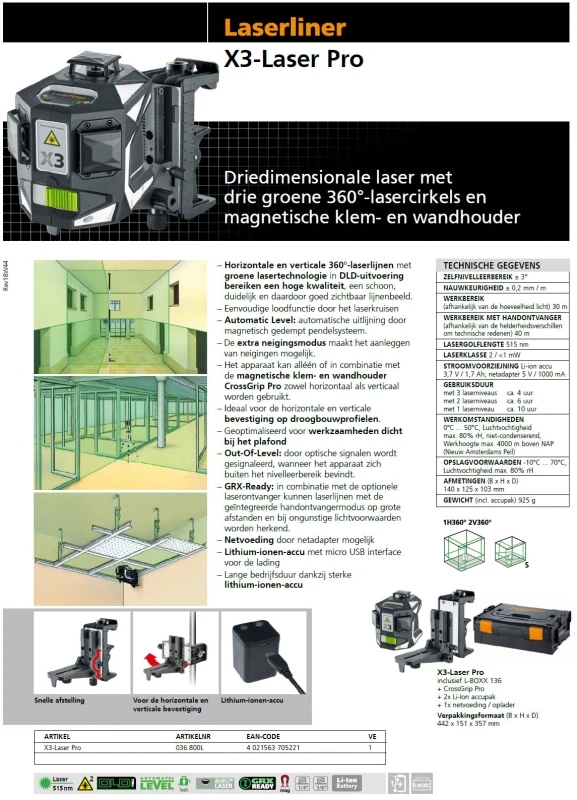 Technische gegevens van Laserliner X3-Laser Pro