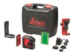 De zelfstellende kruislijnlaser L2G-1 van Leica met groene laser. Het tijdrovende proces van de waterpas is voorbij. Stel de lijnlaser op en hij zorgt zelf tot hij waterpas staat met een bereik van 4 Gr. De grote glazen lens zorgt ervoor dat het uittreedbereik van de laser erg groot is en geeft de lijnen duidelijk weer met een bereik van 35 meter. De 2 lasers gecombineerd zorgen voor een exacte hoek met maar 1 druk op de knop. De zelfstellende functie kan ook worden uitgeschakeld met behulp van de vergrendelfunctie, handig om uitlijnen onder iedere hoek bijvoorbeeld bij trappen. Tevens werkt de vergrendelfunctie als transportbescherming.