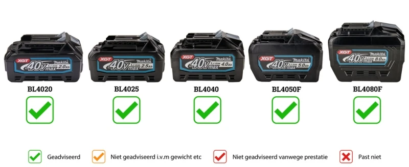 - Werkt op 1x XGT of LXT accu, maar er kunnen er twee geplaatst worden voor langere werking.