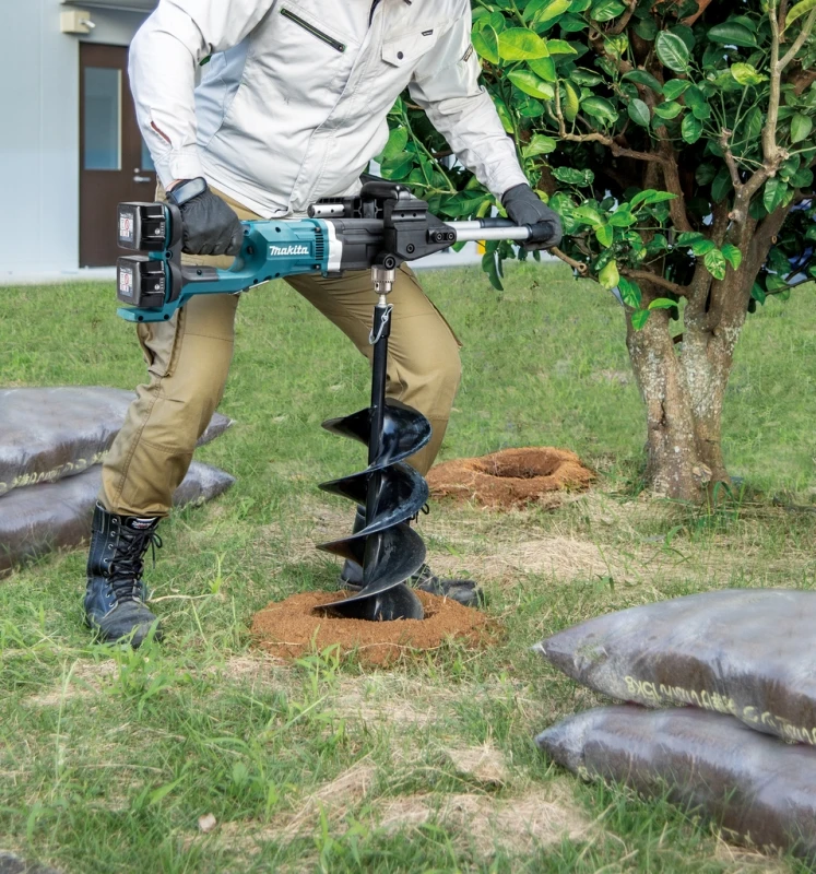 MAKITA 2×18 V accugrondboor voor diverse toepassingen. Een welkome hulp voor het planten van bomen/struiken of het plaatsen van een afrastering. De gaten boor je in een handomdraai met deze krachtige professionele accugrondboor. Geen last meer van uitlaatgassen die in je gezicht blazen of het geluid van de knetterende brandstofmotor. Schoon, stil en compact.