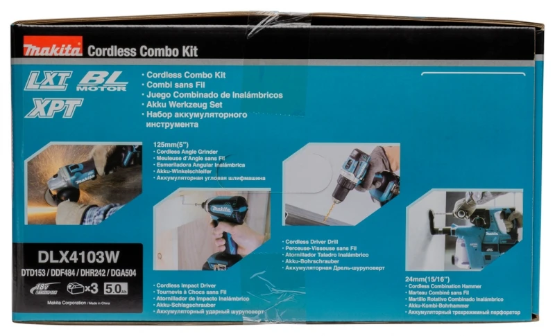 Makita DLX4103W (3x Accu) Combiset | 4x machine | 3x Accu 18 Volt 5.0 Ah | +Tas