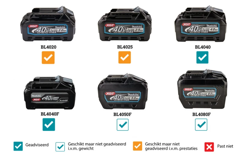 - Gewicht incl. accu (BL4040) : 3200 gram