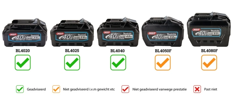 - Gewicht met XGT BL4080F accu : 5800 gram