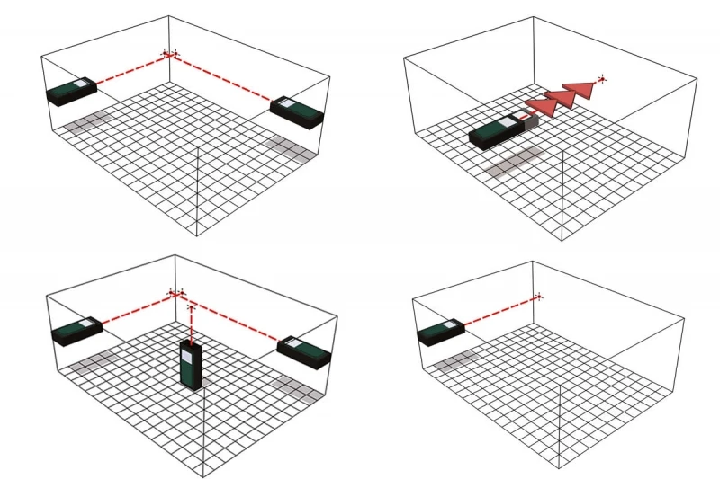 - Laserfuncties : Lengte, Vlak, Volume, Duurmeting (tracking)
