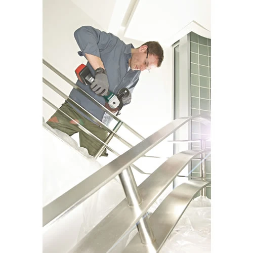 Krachtige satineermachine van Metabo die werkt op 18 Volt Li-Ion accu’s.