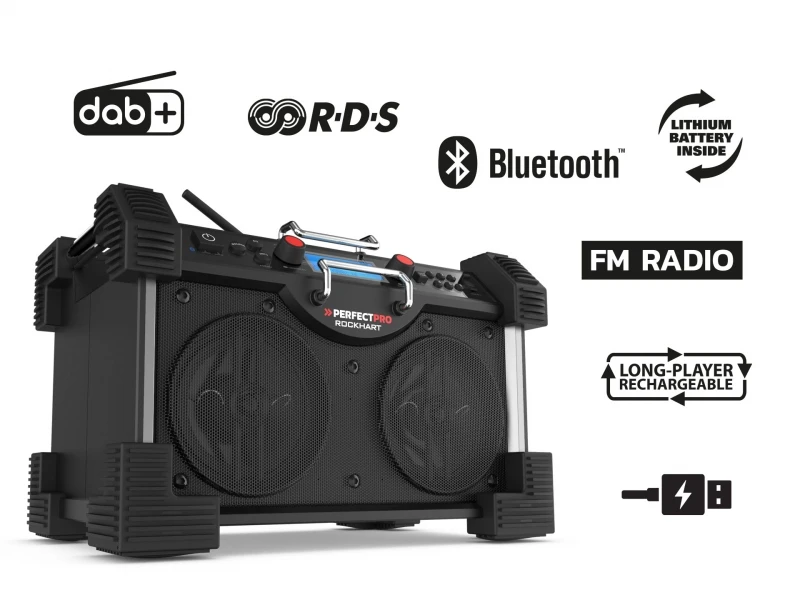 PerfectPro ROCKHART Bouw Radio | DAB+ | FM | Bluetooth | MP3 | LongPlayer Accu