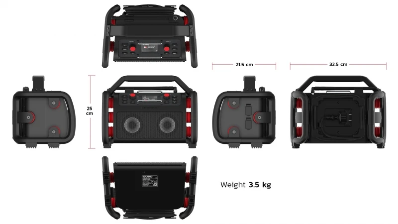 Compact topmodel, uitgerust met een zeer sterke lithiumbatterij en twee krachtige 15 watt Neodymium speakers. Verrassend krachtig en zuiver geluid in combinatie met een compacte, bouwbestendige behuizing. Speelt via WiFi digitale radio in binnenruimtes waar DAB+ signaal zwak is. Of voor wie via internet alle (lokale) zenders in de wereld wil ontvangen.