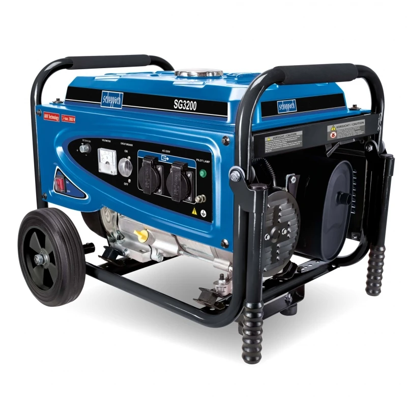 De SG3200 generator van Scheppach wordt aangedreven door een 196 cm3 4-takt motor en levert met maximaal 2800 W altijd voldoende stroom voor werkzaamheden in en om het huis of op de bouwplaats. Dankzij het stabiele stalen frame, het aandrijfmechanisme en de uitklapbare handgrepen is de stroomgenerator mobiel en veelzijdig inzetbaar. Een benzinetank van 15 liter zorgt ervoor dat je tot wel 12 uur lang van stroom wordt voorzien.