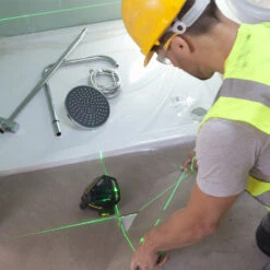 - Projecteert 3x 360 graden groene laserstralen