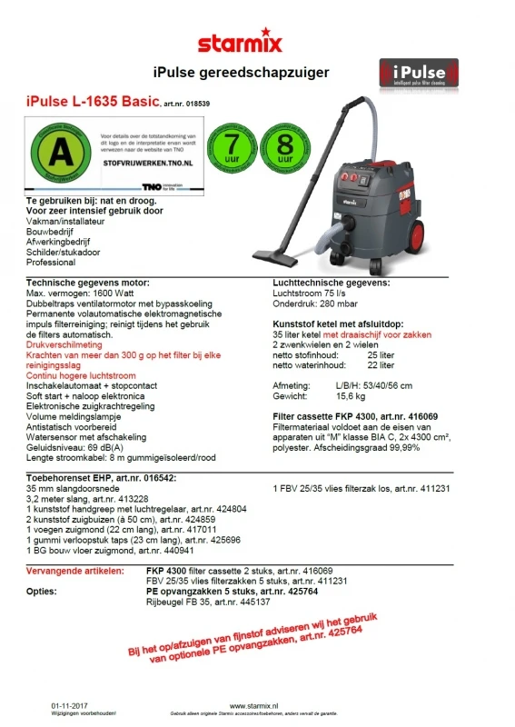Starmix iPulse L-1635 Basic Stofzuiger iPulse L-1635 Basic | 1600 Watt